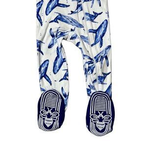 Burt's Bees Baby Organic Cotton Whale Blue White Zippy Footie Sz 18 months