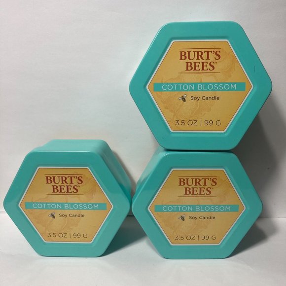 Burt's Bees Cotton Blossom 2 Wick Tin Soy Candle Set of 3 3.5oz DISCONTINUED