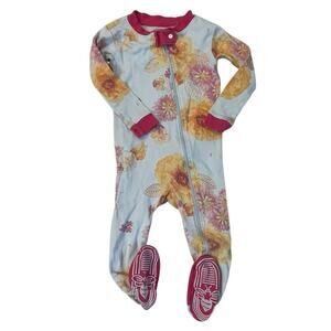 Burt's Bees Floral Pajama Girls 18m Blue Floral Footed Sleeper One Piece