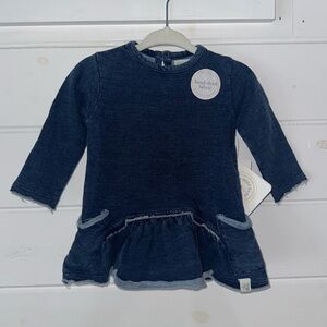 Burts Bees French Terry Knit Denim Wash Organic Cotton Super Soft Baby Dress NWT