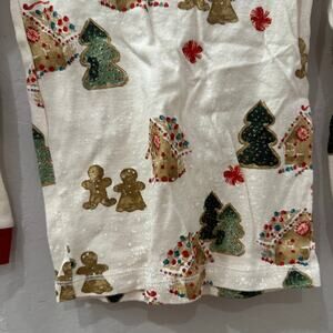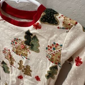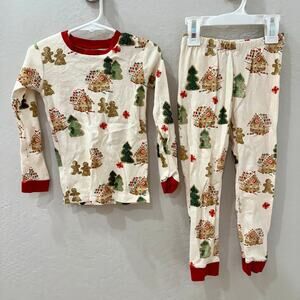 Burt’s Bees pajamas size 4T. Gingerbread Bakes print is a cream background with cute gingerbread scene featuring houses, cookies, and trees! So cute for baking and Christmas. Very good condition.