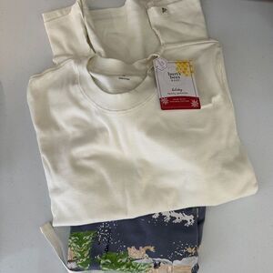Experience ultimate comfort with this Burt’s Bees pajama set, featuring a delightful winter-themed pattern in cream and blue. The set includes a cozy top and matching bottoms, perfect for snuggling up on chilly nights. Enjoy the playful design that adds a touch of whimsy to your bedtime routine.