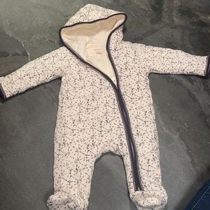 New without tags Burt’s Bees Baby winter footed onesie with hood in cream and black. Never worn. Washed once, lined dried.