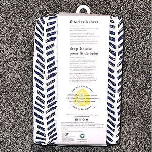 Burt’s Bees Baby 100% Organic Cotton Fitted Crib Toddler Sheet Jersey Knit NWT 28” x 52” (71 cm x 132 cm) blue white