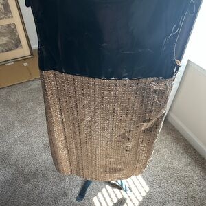 Elegant sleeveless dress by Buru. Features a black and gold design with a unique pattern.New never worn.Offers welcome,no returns.