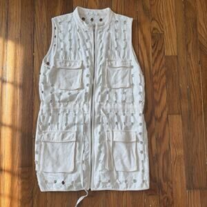 Buru Womens Utility Vest Cargo Pocket Grommet Zip Front Drawstring Waist Tunic