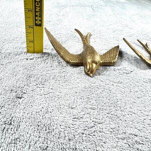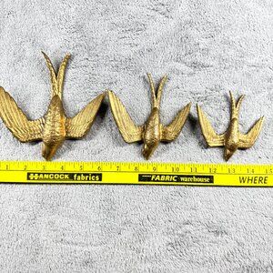 Vintage Burwood wall swallows, dated 1984, set of 3. Molded plastic in a gold finish with textured feather detail. Perfect for mid-century, retro, or cottage-inspired décor. Pre-owned in good vintage condition with only light wear from age. Please see photos for details.