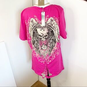 Bus Stop Women’s Plus Spider Web Bling Biker Tee!