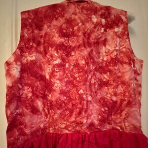A very special one of a kind dress. Tie-dye fitted button-up cotton brocade top, gathered eyelet cotton skirt with diamanté accents.