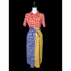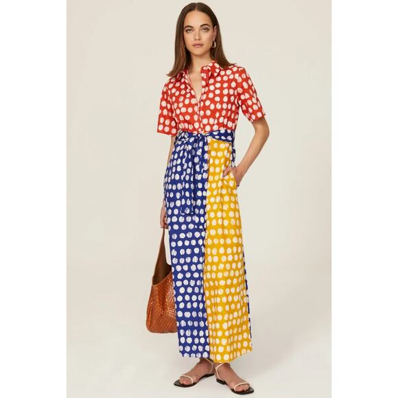 Busayo Collective Colorblock Shirt Dress Size 4 Polka Dot Maxi 100% Cotton