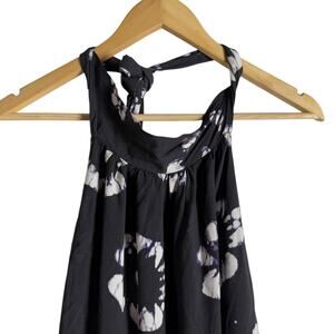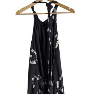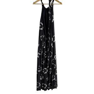 Busayo Collective Hibiscus Floral Print Black Halter Tie Neck Maxi Dress Size XS