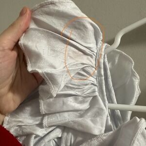 Inner pocket- the thread is coming loose. Can still wear as is. Or can stitch up.