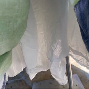Busayo One Shoulder Ruffle Tie Dye Maxi Purple White and Green Dress in size 0. Go far out in this Busayo Collective maxi dress patterned in bright tie-dye. Tie dye linen blend (53% Linen, 47% Cotton). A-line. One shoulder. Sleeveless. Back zipper closure.