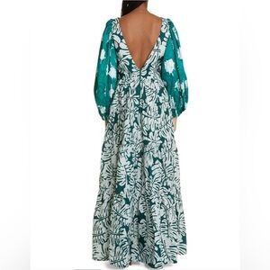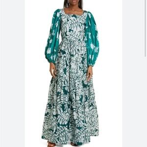 Busayo Olupona founded her eponymous label upon the belief in the power of color to communicate the dynamism; personality and nuances of the individual. Using textiles as a bridge between the past and present; its fabrics are made entirely in-house using Adire — a traditional Yoruba dyeing technique that began in Southwest Nigeria at the turn of the 20th century. Made just for us; the 'Ewa' maxi features a tiered silhouette made from palm-printed cotton with tie-dyed balloon sleeves. Style with summer accessories; like lace-up sandals and a straw tote.