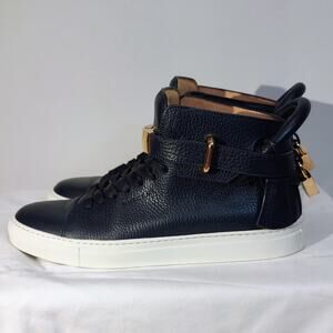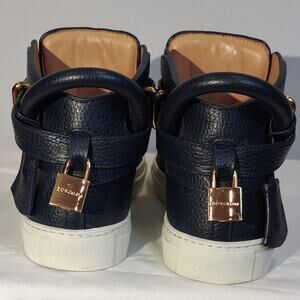 Buscemi 100m Leather Navy Blue/ White High Top Sneakers Gold Lock/Clasp. Size 10