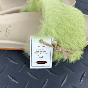 Buscemi Slide Fur Clot Green Leather Slippers US 6 EU 36