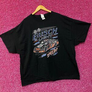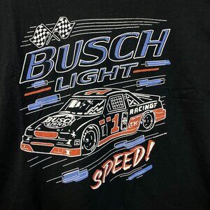 Busch Light Speed Racing Beer Promo T-Shirt XXL. Generally measures 27 inches pit to pit and 31 inches long. Amazing graphic design short sleeve promo vintage style shirt depicting a race car with speed and Busch Light lettering. Perfect for beer lovers and Busch Light fans. New never worn and in great condition.