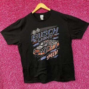 Busch Light Speed Racing Car Graphic Design T-Shirt Large. Generally measures 23 inches pit to pit and 29 inches long. Amazing graphic design shirt, perfect for beer lovers. New never worn and in great condition.