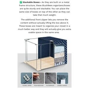 the Bush bees Box Clothes Organizer, perfect for keeping your wardrobe neat and tidy. With a sleek 001-Grey color, this organizer is both stylish and functional. It has a folding feature, making it easy to store and transport. Has metal inner frame to protect items and allow stacking ...waterproof, odor proof, and has a clear window in the front with access to items through front double zipper or top double zipper for easy access..I HAVE ONLY 1 LEFT