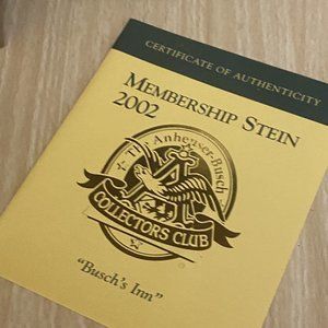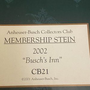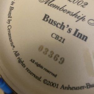 Bushes Inn ANHEUSER BUSCH COLLECTORS CLUB 2002 MEMBERSHIP Stein COA CB21