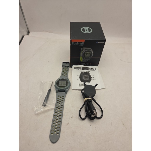 Bushnell Golf Neo iON 2 GPS Rangefinder Watch 368851 Silver Green TESTED WORKS
