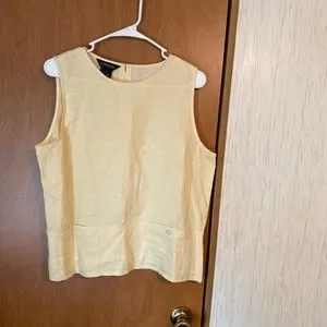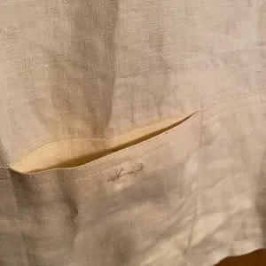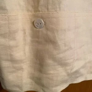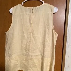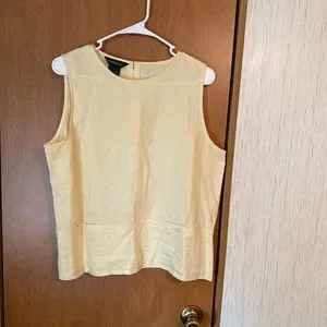 Bushwacker Womens 100% Linen Sleeveless Top. Two bottom pockets with buttons closure on front of blouse. Keyhole back button closure. Light and airy. armpit to armpit-21”, length-23” approx. Lovely used