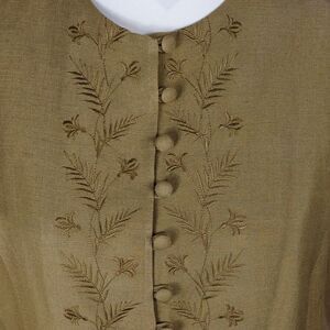 This green linen Bushwacker woman's embroidered button down vest is a size 12 with a pit to pit measuring 21". Beautifully embroidered and has covered buttons. Fully lined. Shell: 55% linen 45% rayon Linen: 100% acetate. Pre-owned and in excellent condition. All offers welcome.