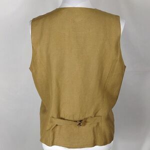 This green linen Bushwacker woman's embroidered button down vest is a size 12 with a pit to pit measuring 21". Beautifully embroidered and has covered buttons. Fully lined. Shell: 55% linen 45% rayon Linen: 100% acetate. Pre-owned and in excellent condition. All offers welcome.