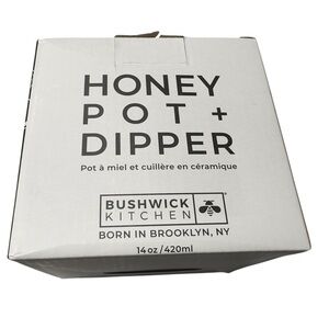 Bushwick Kitchen Honey Pot + Dipper Ceramic Jar & Lid with Wood Dipper 14oz NIB