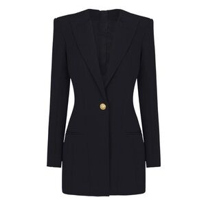 Meet our elegant business blazer dress suit, expertly crafted from a lightweight fabric, perfect for the spring and autumn seasons. This sophisticated ensemble features a high solid color design, complemented by long sleeves, and gold ornate buttons, with a regular fit tailored to enhance the silhouette. Ideal for office wear, this dress exudes professionalism and style, making it a must-have for business-savvy women.