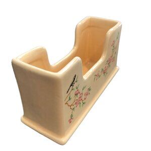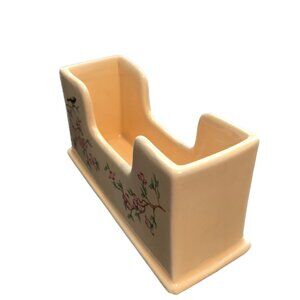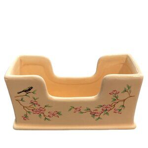 Business Card Holder, Russ Berrie, cream color with Bird in a pink dogwood tree; vintage, rare, hard to find;