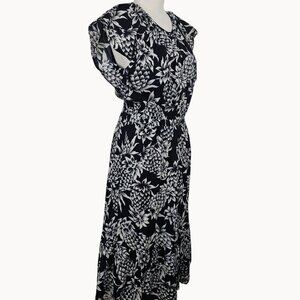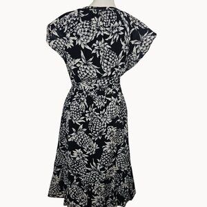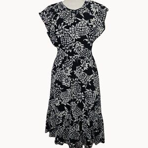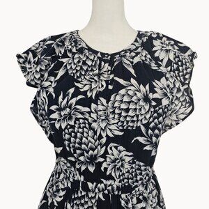 Business Casual Crinkle A-Line Pineapple Floral Navy White Flowy Dress J.Crew 8M