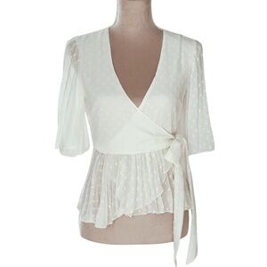 Business Casual Top Workwear Office White Swiss Dot Wrap Peplum Blouse Sz 2