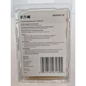 Bussmann / Eaton CB185-150A high-amp waterproof Type III circuit breaker. New in sealed retail package. Rated 150A, 30V DC. Designed for marine, RV, automotive, and other 12V/24V electrical systems. Manual reset with visible trip indicator. Reliable OEM-grade protection for high-demand circuits.
