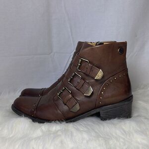 Bussola Antwerer Rust Strappy Buckle Trim Booties Sz 37/US 6.5