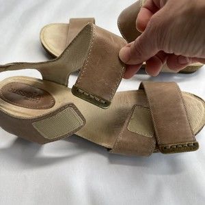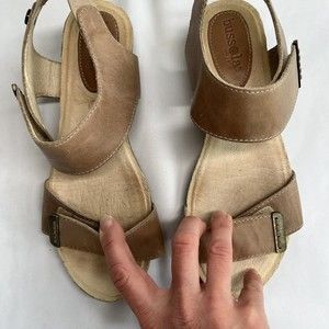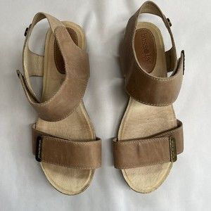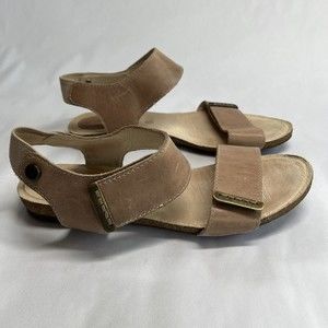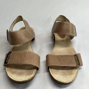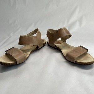 Bussola Maynila Women's Beige Leather Sandals Size 40 US 9 Flats Cork Tan Straps.
