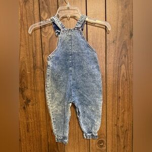 Buster Brown "Board To Be Wild" Embroidered Blue Acid Wash Denim Overall 18 Mos