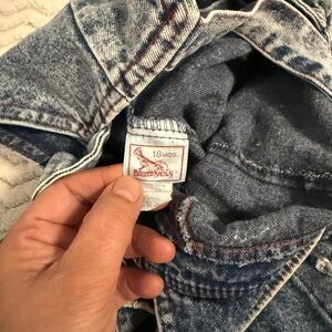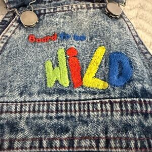 Vintage Buster Brown "Board To Be Wild" Embroidered Blue Acid Wash Distressed Denim Overall 18 Mos.