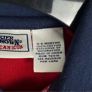 Buster Brown one piece size 3-6 months. Red, race car print. Vintage. Good condition, some fading on cars (see pics). Smoke free home.