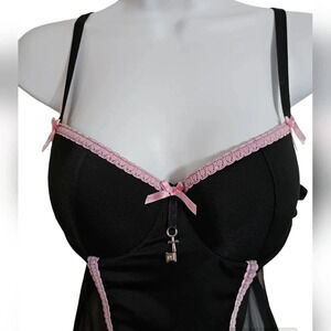 Bustier 34B Women Coquette Black Pink Sheer Goth Seduction Intimate Locket Mesh