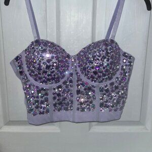 Bustier Crop Cami Tank Top Sexy w/Rhinestones Light Purple Never worn No Tags