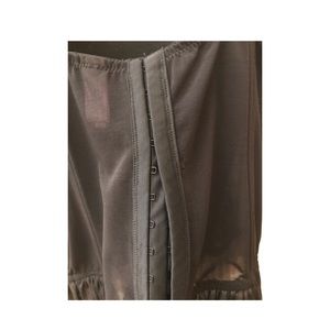Black and Cream bustier tank top with a corset backing and ruffled ends. The back is sheer but the front is a thicker corset material.