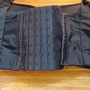 Adjustable straps, back close with 7 hook & eye closure. Flexible underbust support ribbing-no underwire to dig in