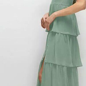 Bustier-Style Chiffon Tiered Ruffle Maxi Dress with Adjustable Straps in Seagras