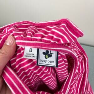 Busy Bees Eliza Ruffle Polo Pink Stripes. Girls size 8. Smooth cotton knit. Short puff sleeve top with button placket and ruffle neckline. Original retail $50. Great condition!