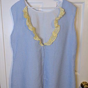 Busy Bees Smocks Striped Blue & White w/Yellow Lace Down Back Dress - 2XL NWT