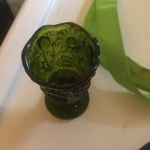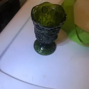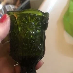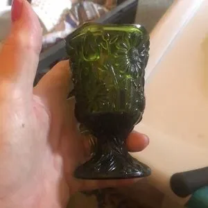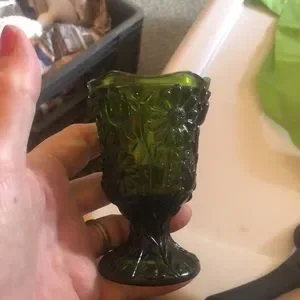 Small green goblet No cracks or chips Pretty flower Faust design Scalloped top