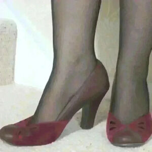 But Another Innocent Tale Burgundy Suede Leather Retro Vtg Feel 1950's Heels 7.5
