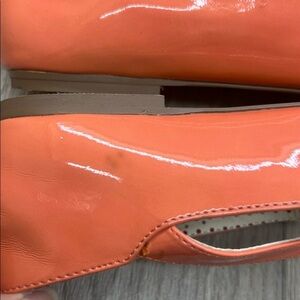 Pre owned Step out in style with these elegant orange flats. Featuring a unique cutout design, they offer both comfort and flair for any occasion. used shoes can include signs of wear such as scuffs and scratches, dust and creases from normal use, Dirt, stain or damage will be shown in photos. see all pictures as they are part of the of the description.