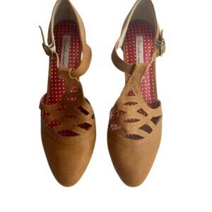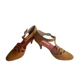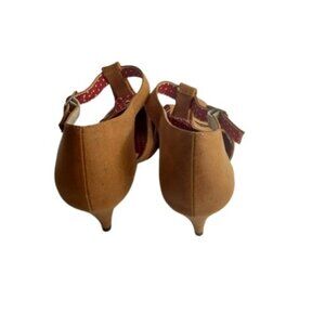 But Another Innocent Tale Womens Robbie T-Strap Heels Tan Vegan Leather 8